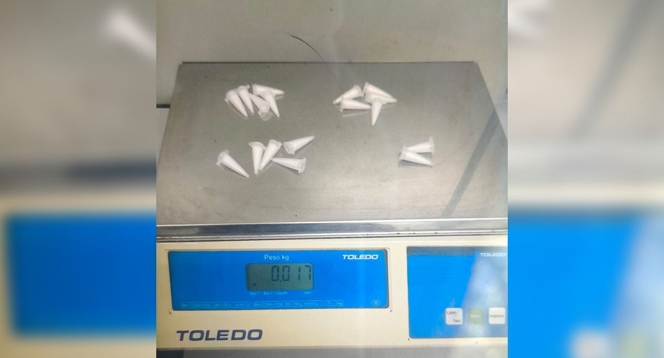 Durante a revista pessoal, os agentes localizaram com o adolescente um invólucro plástico contendo 17 microtubos com substância semelhante à cocaína. Questionado, ele teria confessado que pretendia vender a droga.