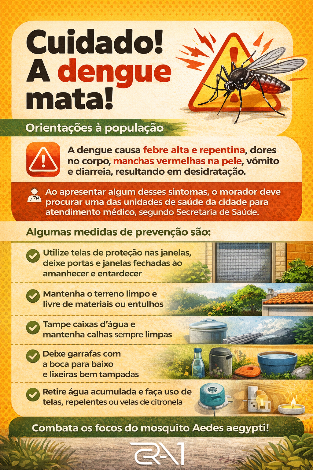 A Prefeitura reforça que o combate ao Aedes aegypti depende da colaboração de toda a comunidade para evitar o avanço da doença nas próximas semanas.