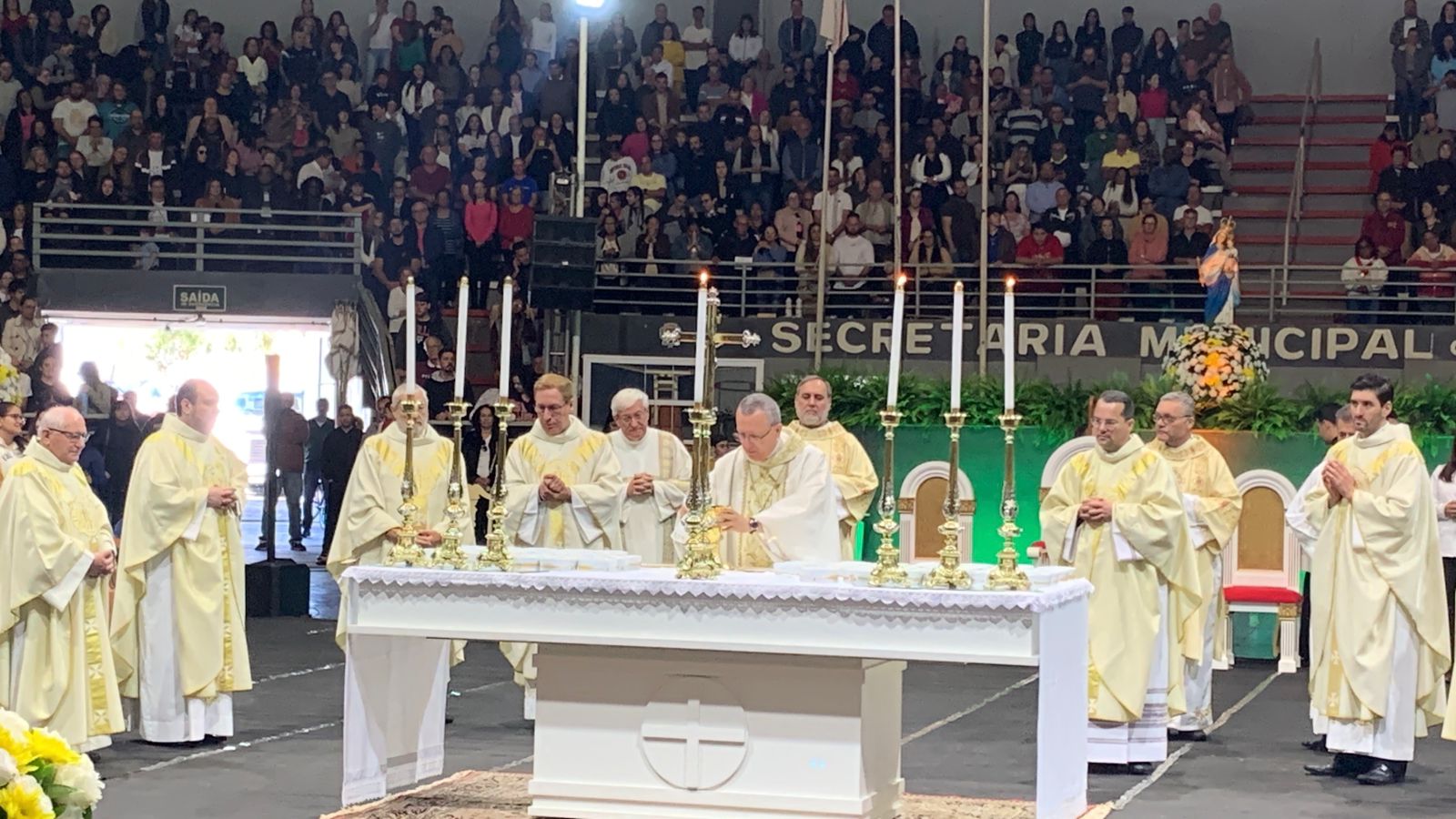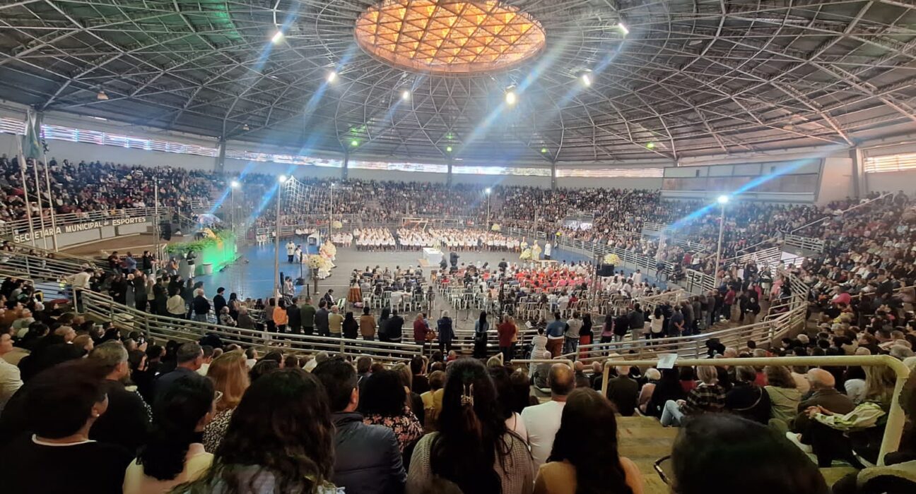 A tradicional celebração de Corpus Christi reuniu cerca de 5 mil pessoas na manhã desta quinta-feira (19) no Ginásio Municipal de Esportes Nelson Rüegger, em Araras (SP). A missa foi presidida pelo bispo diocesano Dom José Roberto Fortes Palau e contou com a participação de padres, diáconos, ministros e fiéis de diversas paróquias, igrejas e comunidades católicas da cidade, além de autoridades locais.