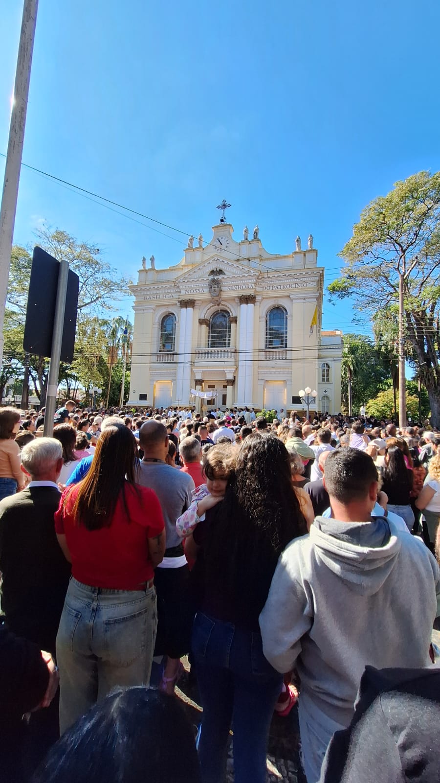 O encerramento da programação ocorreu com a bênção do Santíssimo Sacramento em frente à Basílica, reunindo os fiéis para um momento de silêncio, oração e adoração.