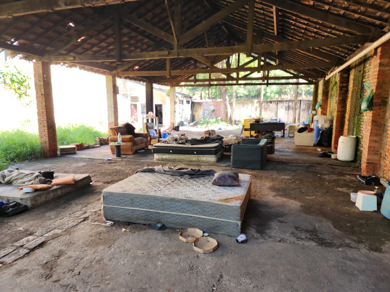 O proprietário esteve presente e informou que o imóvel está em processo de negociação. Ele relatou ainda que já tentou retirar ocupantes irregulares, mas eles continuam utilizando o espaço.