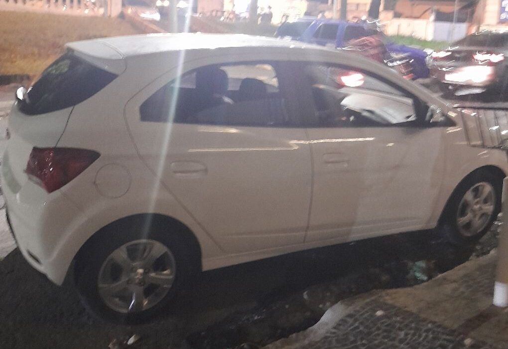 Segundo a corporação, o COI informou que um Chevrolet Onix branco circulava pelo município e havia passado pela Avenida João Rossi, próximo à Berg Stihl. A equipe iniciou buscas e localizou o carro já em direção ao Centro, onde realizou a abordagem.