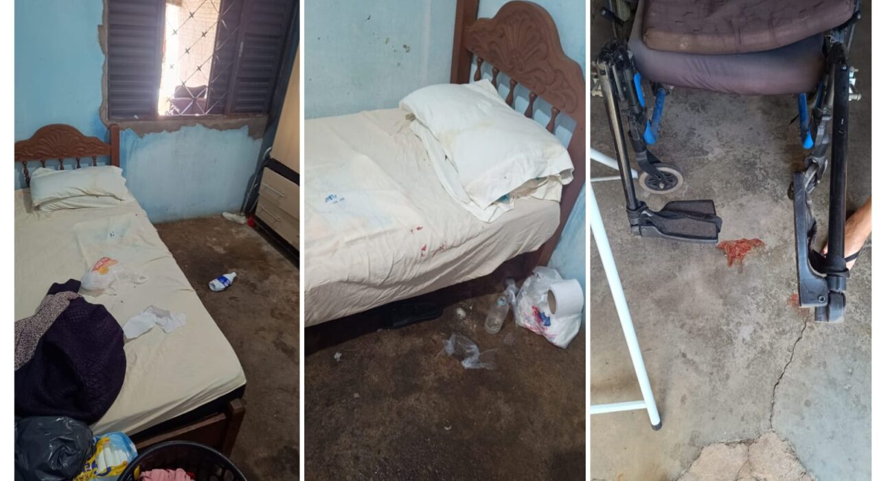 Ao chegarem ao endereço informado, os guardas encontraram o imóvel aberto e entraram para averiguação. No interior da casa, localizaram a idosa caída no chão do quarto, com ferimentos e hematomas pelo corpo. O ambiente apresentava condições precárias de higiene.