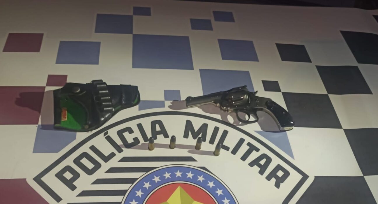 Após acionar o 190, a mulher retornou à sede da Polícia Militar. Com as informações repassadas, as equipes se deslocaram até a residência do casal, onde, com autorização, realizaram buscas e localizaram um revólver calibre .38, da marca Smith & Wesson, municiado com quatro cartuchos intactos, escondido no interior do freezer da geladeira.