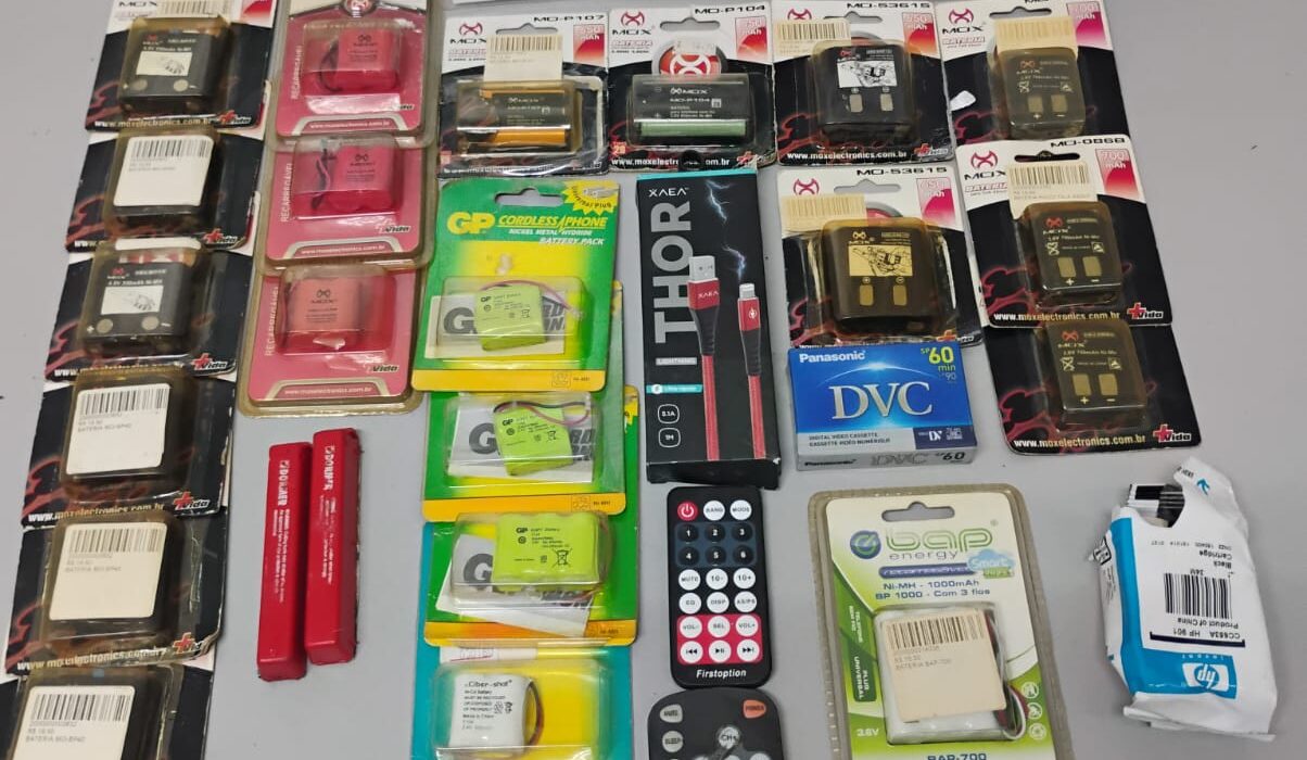 Na ação, o homem levou 21 baterias diversas, um cabo USB, uma fita DVC, duas brocas e um cartucho de impressora, com valor total estimado em R$ 1.377.
