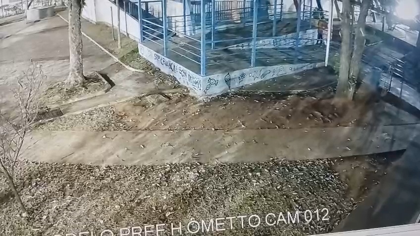 Segundo a corporação, a ação foi flagrada pelas câmeras de monitoramento da unidade escolar, que registraram o momento em que o suspeito entrou no local e retirou o objeto. O COI (Centro de Operações Integradas) acompanhou as imagens e acionou imediatamente as equipes em patrulhamento.