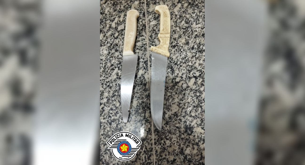 Diante da situação, os agentes intervieram imediatamente e deram ordem de abordagem. O homem soltou a arma no chão e foi detido. Durante buscas nas imediações, os policiais localizaram uma segunda faca que também pertencia ao suspeito.