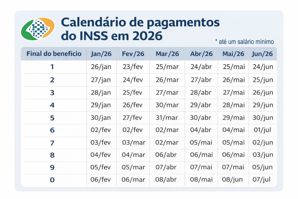 O INSS (Instituto Nacional do Seguro Social) inicia no fim de janeiro o calendário de pagamentos de aposentadorias, pensões e demais benefícios referentes a 2026. O primeiro crédito está previsto para o dia 26, com os depósitos sendo realizados de forma escalonada até o começo do mês seguinte, conforme o cronograma oficial.
