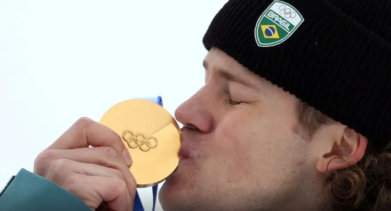 O Brasil celebrou neste sábado (14) um feito histórico nos Jogos Olímpicos de Inverno. O esquiador Lucas Pinheiro garantiu a primeira medalha dourada do país — e também da América do Sul — ao vencer o slalom gigante disputado em Bormio.