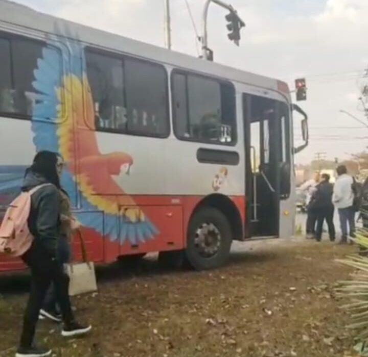 O veículo transportava estudantes e trabalhadores quando perdeu o controle. Passageiros relataram momentos de pânico e contaram que o motorista pediu para que todos se segurassem segundos antes de o ônibus invadir a calçada e parar próximo à Delegacia de Polícia.