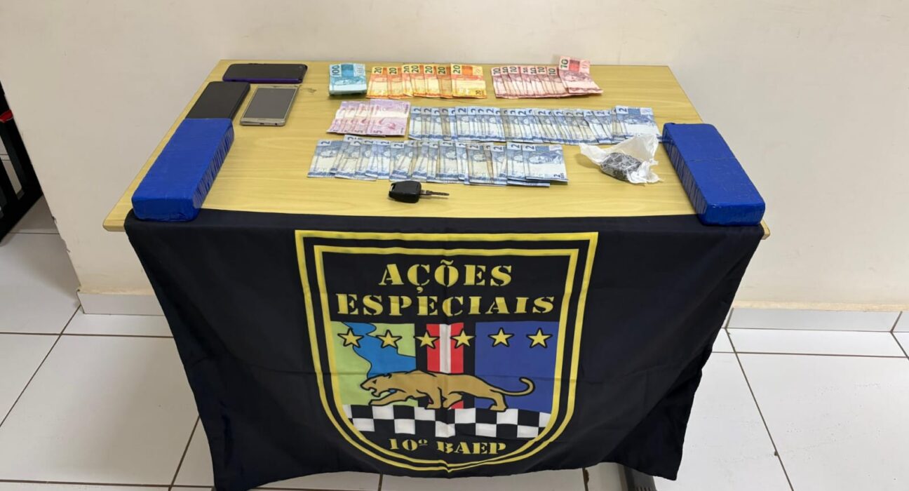 A primeira ocorrência foi registrada por volta das 6h15, no Condomínio Japão, no Jardim Novo. No local, as equipes cumpriram mandado de busca, apreensão e prisão expedido pela Justiça. Após tentativas sem resposta, os policiais precisaram acessar o apartamento com técnicas específicas. O procurado foi localizado em um dos quartos, acompanhado da companheira. Durante as buscas, foram apreendidos dois aparelhos celulares, R$ 459 em dinheiro, uma porção de droga do tipo ice e dois tijolos de maconha. Um veículo também foi localizado após resistência inicial do suspeito em informar sua existência. Com apoio do canil do BAEP, entorpecentes foram encontrados escondidos no interior do automóvel. O homem foi conduzido à DIG e permaneceu preso à disposição da Justiça.