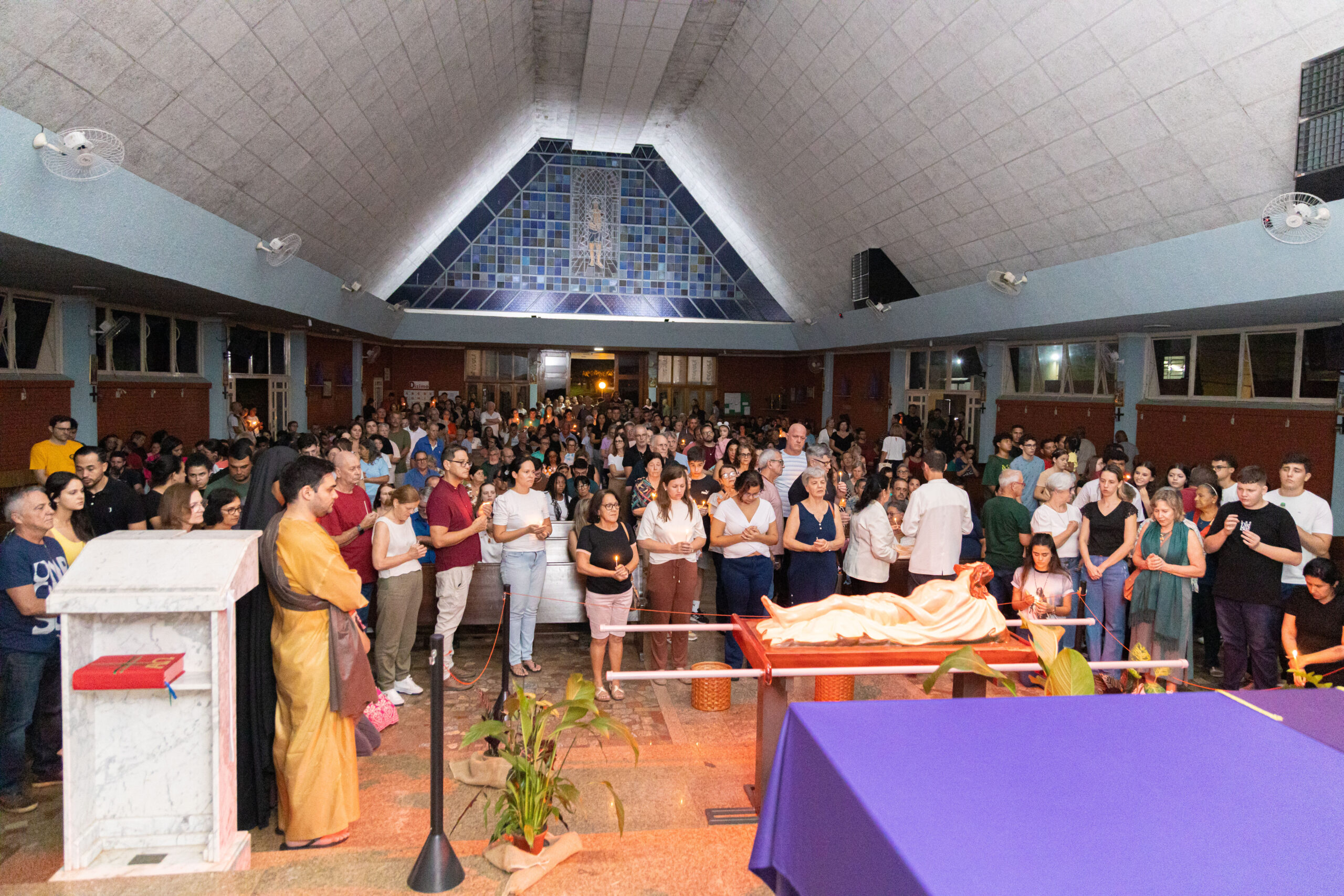 No perfil oficial no Instagram, o pároco, padre Alexandre, convida a comunidade a participar do momento de fé e destaca a importância da reflexão durante a Sexta-feira Santa.