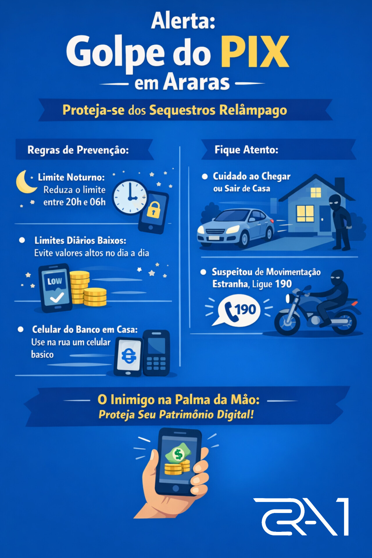A Polícia Militar fez um alerta sobre o aumento de casos do chamado “golpe do Pix” em Araras e reforçou orientações para que a população adote medidas de segurança, principalmente no uso de aplicativos bancários.