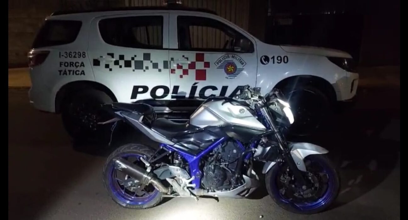 Uma motocicleta MT-03 azul, produto de furto, foi localizada e recuperada pela Polícia Militar na noite deste sábado (27) após uma perseguição pelas ruas da zona leste de Araras (SP). A ocorrência foi registrada na Rua Amadeu Gava, no Jardim Miriam, por volta das 23h50, durante a Operação Impacto.