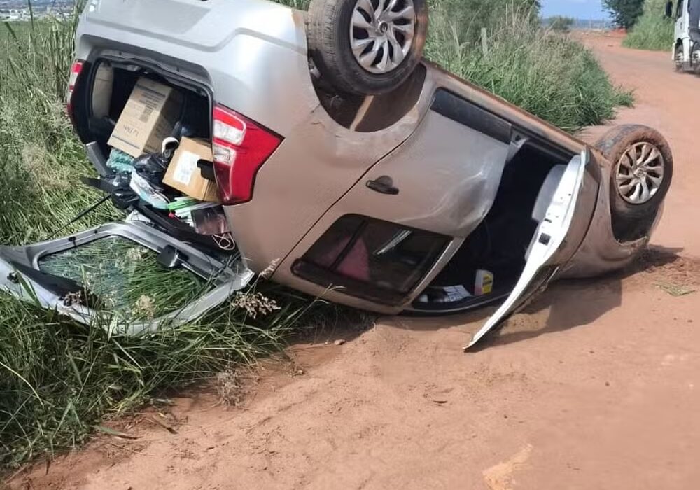 Durante as buscas, um caminhoneiro informou aos guardas sobre um carro capotado em uma estrada de terra. Ao chegarem ao local, os agentes constataram que se tratava do mesmo automóvel levado no roubo.